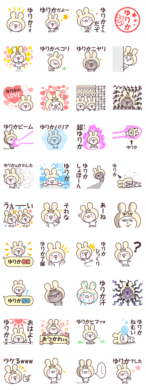 【ゆりか】の名前うさぎ -LINEスタンプマニア