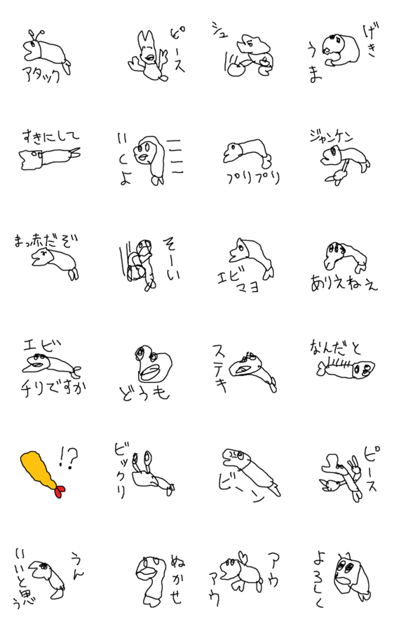 みんな大好きエビやろうがスタンプになったよ プリプリで美味しいです 茹でると赤くなるのは照れているからさ