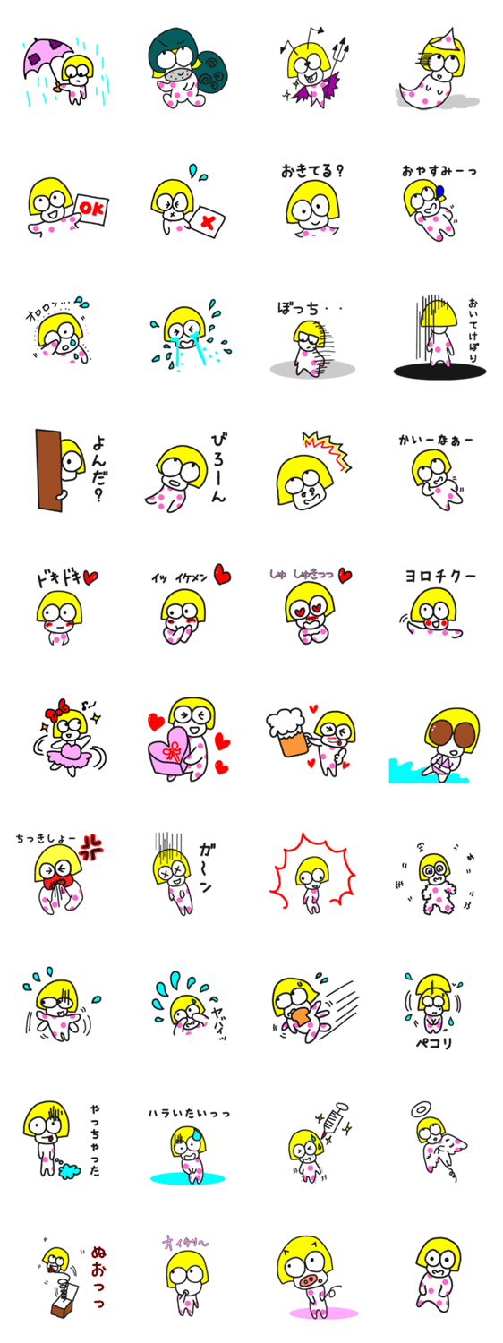 スタンプ説明 ズボラで気が弱いエリゴンは、水玉コスチュームが大好き。どこか憎めないキャラに変身して、世界中から愛されたいと妄想中。どうか皆様使ってやって下さい。