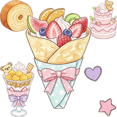 スタンプ説明 クレープ実写風スタンプセット スイーツ 仲間たち 甘い デザート クレープ フルーツ クリーム かわいい 写真風 リアル しずる感 カフェ おやつ LINE トーク 食べ物 人気