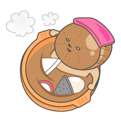 スタンプ説明 出汁の染みたべテランおでん大根“おでんこん”に弟子入りした新米大根の日常風景の一コマ
