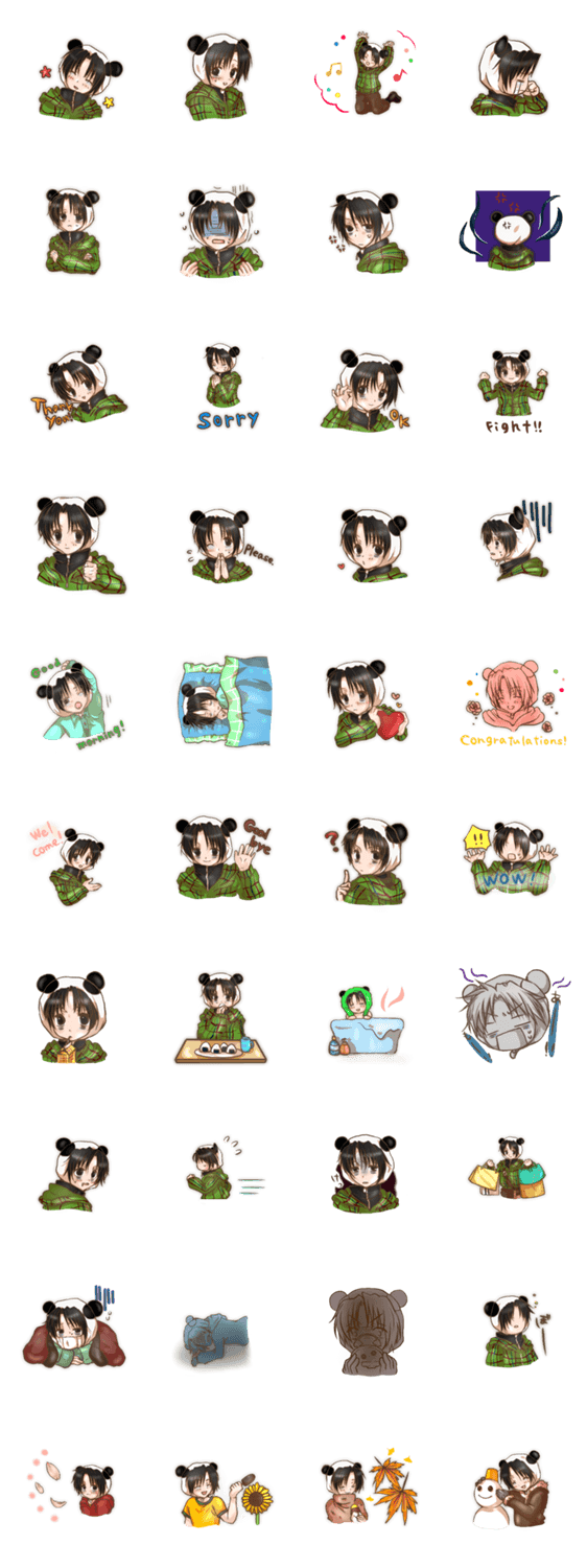 「ぱんと」という名前の、パンダの被り物をした男の子のスタンプです。