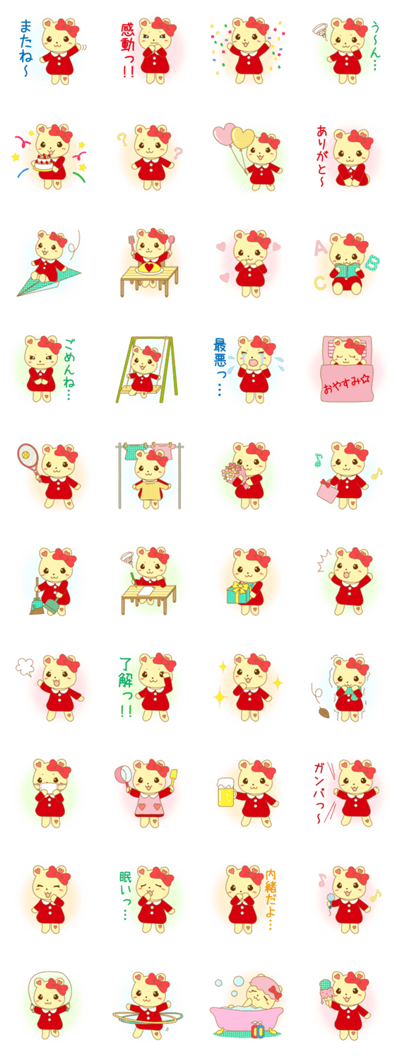 スタンプ説明 ココロンはクマさんです。365日の生活をスタンプにしてみました。
