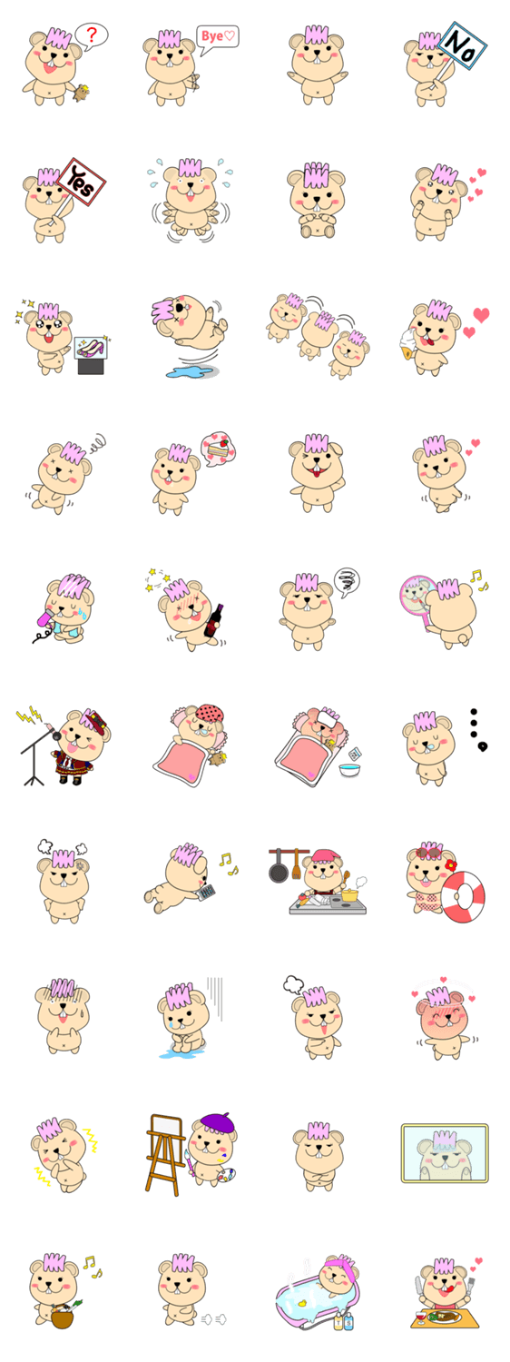 スタンプ説明 おっちょこちょいで気まぐれな「きんくまん」シリーズ第二弾は「こきんくまん」きんくまんの事が大好きな「こきんくまん」。ヤキモチやきでおしゃれな女の子です