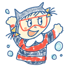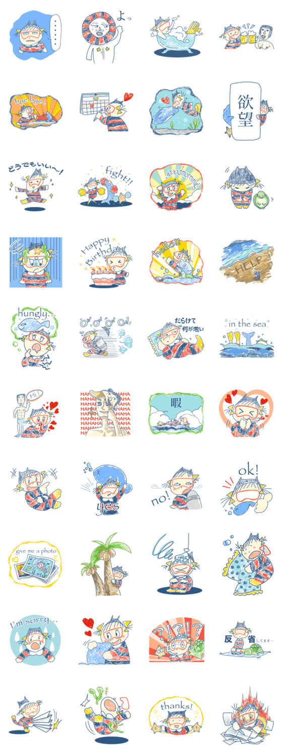 What is waiting for MOGURUMON who dives in to the sea for trying to eat full of fishes. This is MOGURUMON's stamp which provides "diving" in your daily life. |