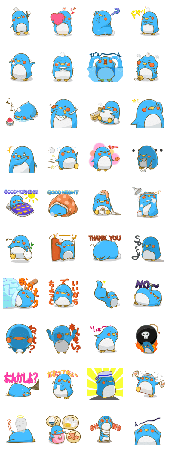 スタンプ説明 元気いっぱいペンギンぺこむ!時々やらかしてしまう-御伴のたまごは一体・・・?