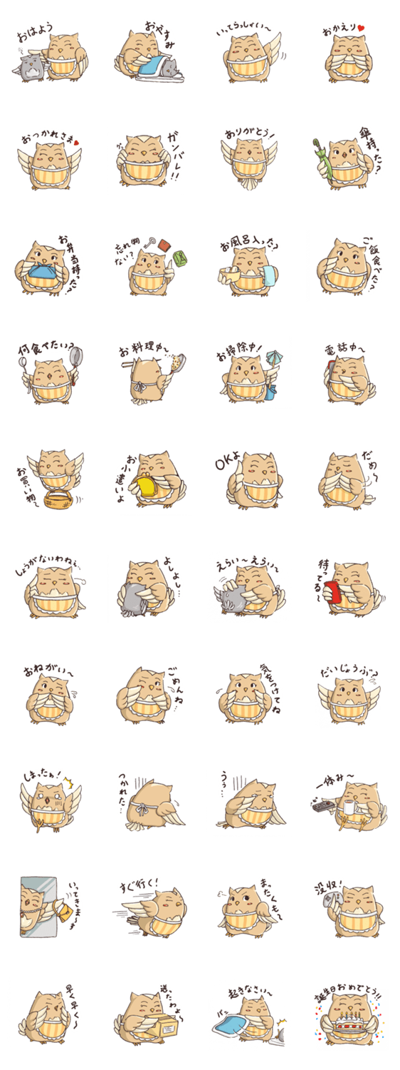 スタンプ説明 母親が子供にかける何気ない一言には思いやりの気持ちがいっぱい詰まっている、そんな言葉をフクロウバスケットシリーズ第二弾、ふくろうお母さんで表現してみました。