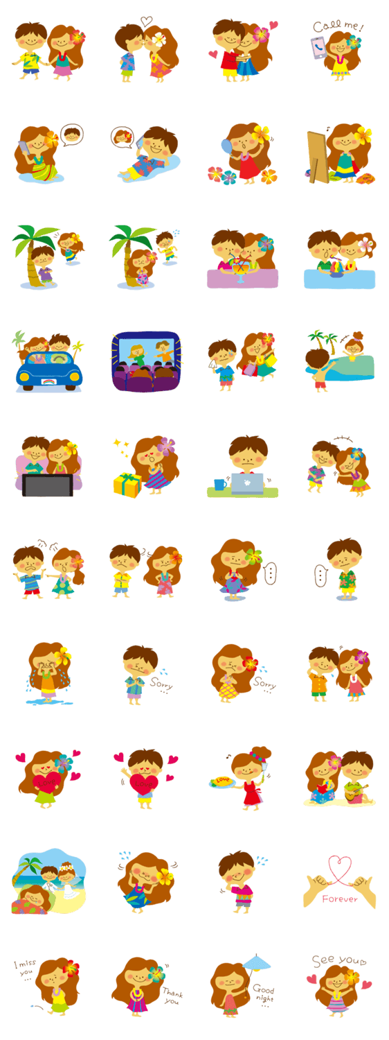 スタンプ説明 フラガールのカプアちゃん、カップルバージョンが登場!ボーイフレンドのカイくんと、デートをしたりケンカをしたり…。ラブラブなふたりが、あなたの恋を応援するよ!