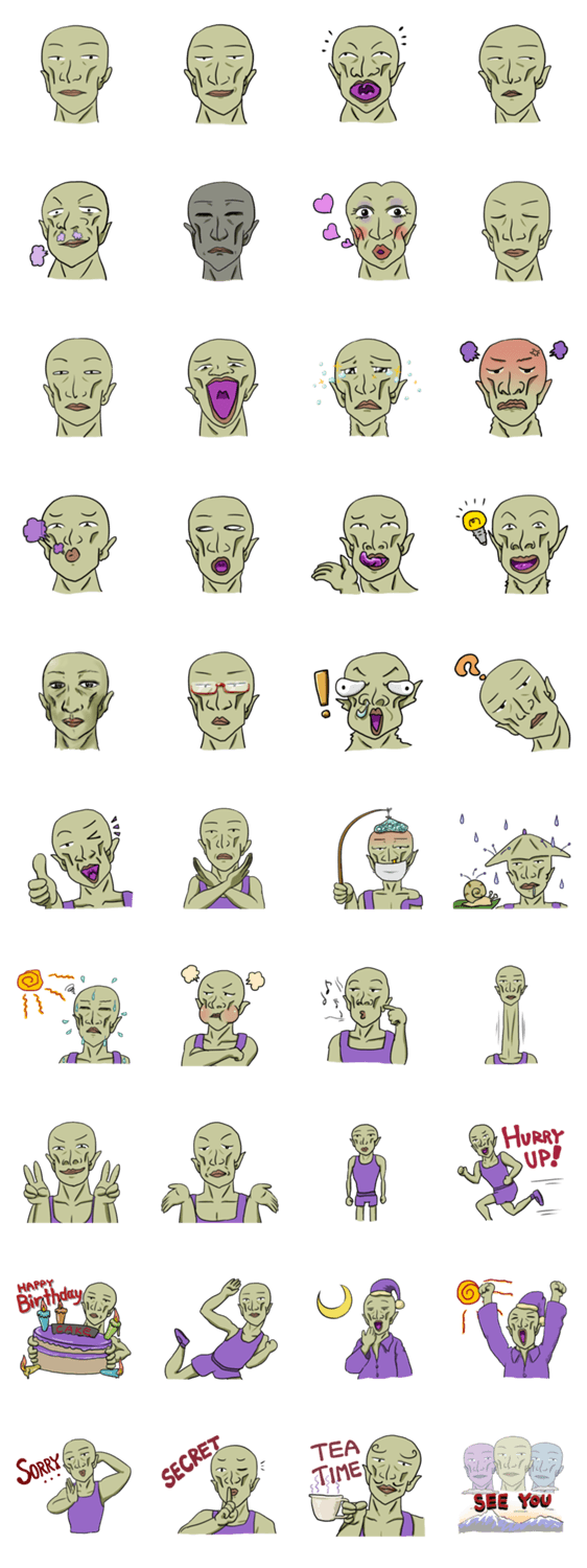 スタンプ説明 あまりテカってない でも顔色は悪いムカツルリン君ムカツルリン君は見てるとなんとなくムカつく男。緑っぽくて顔色がちょっと悪いかな。あとあんまりテカってはないよ。