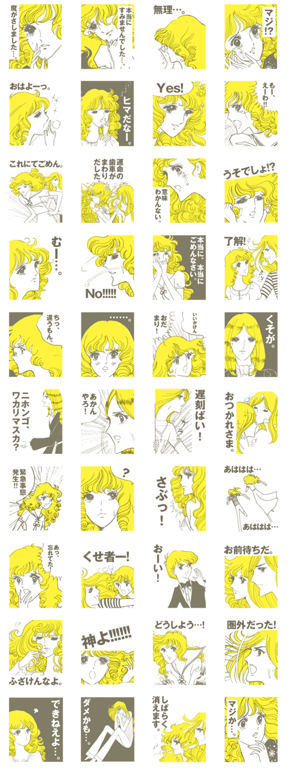 スタンプ説明 キラキラ少女漫画風のイラストがクールな台詞(セリフ)をお届けします!