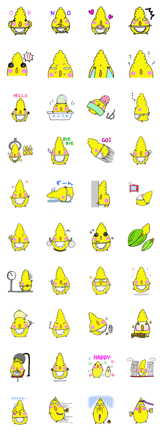 スタンプ説明 パンチパーマがご自慢のオカメインコのかーちゃんです
