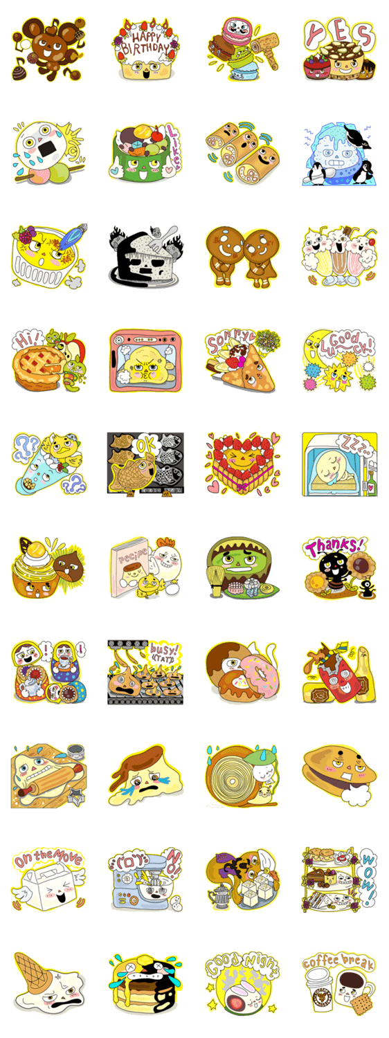 スタンプ説明 スイーツ好きはもちろん!お菓子作り好きさんにもオススメ!カラフルで、お茶目でお菓子な仲間達いーっぱい!★あまぁ~いトークのお手伝いとして大活躍したいんだぁ!