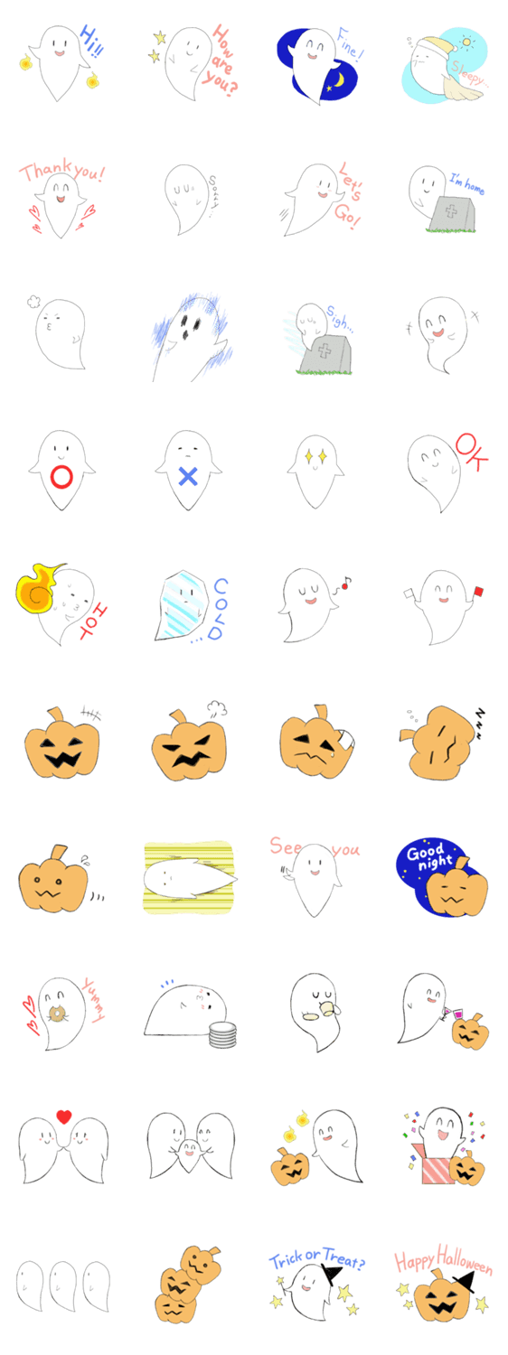 スタンプ説明 かわいいおばけのスタンプです。夏の夜やハロウィンにどうぞ!