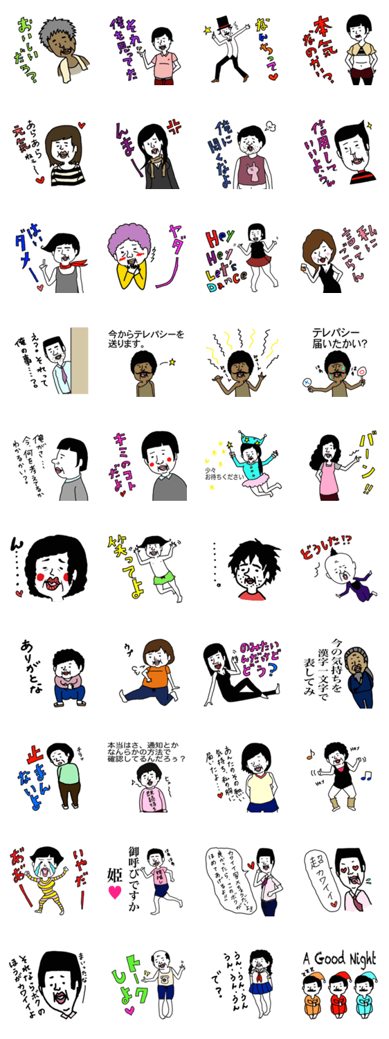 スタンプ説明 ゆるスタのおじさん再び!それに「おばさん」を追加して舞い戻ってきました。送る相手に適度な癒しと適度なイラつきを与えてみては?!