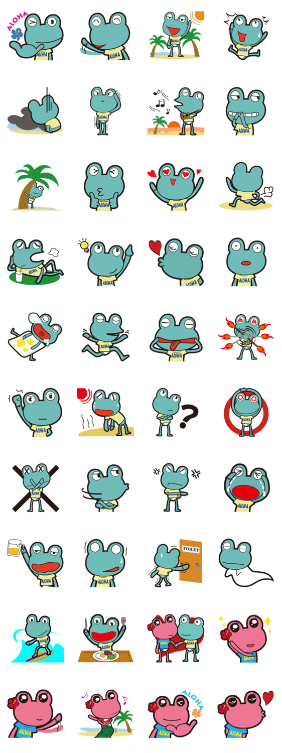 ハワイ育ちのアロハカエルと彼女の日常的スタンプです。あなたの気持ちをゆる~く伝えます。
