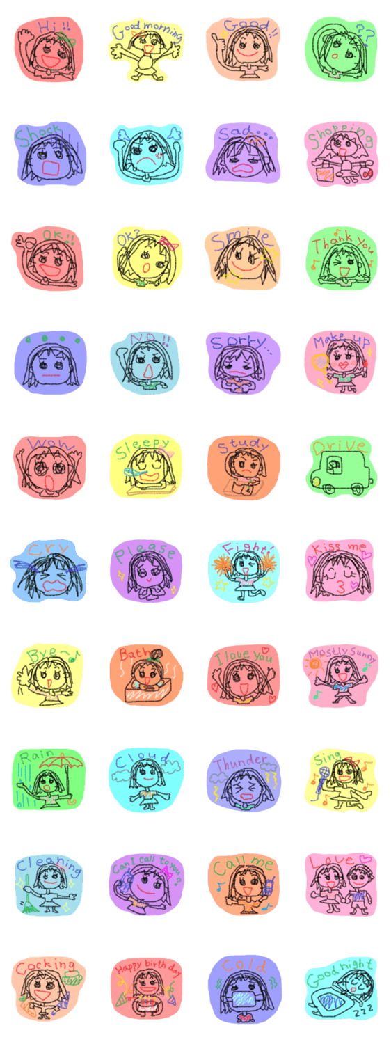 スタンプ説明 小さな子がクレヨンでお絵かきしたような、ほのぼのするスタンプです。