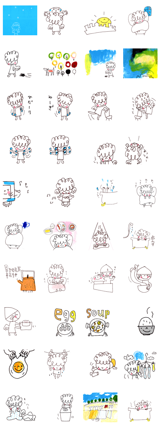 スタンプ名 まつおかたかこの「朝あそび」