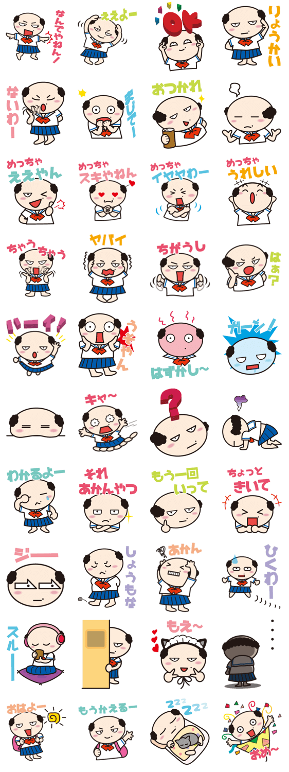 スタンプ説明 気持ちはいつも女子高生。乙女ゴコロを持ったキモカワイイ関西親父。