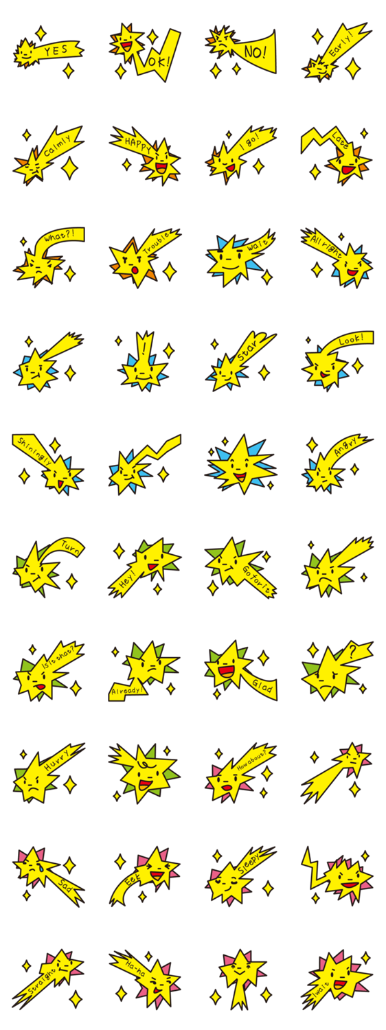 スタンプ説明 流れ星のスタンプです。流れ星にメッセージを入れてみました。お好きな流れ星を使って下さい