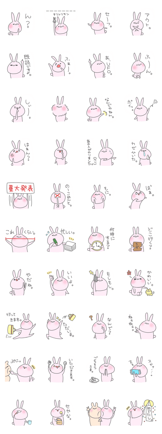 スタンプ説明 ゆるゆるカワイイおたふくうさぎ第2弾です!今回はセリフ付きを多めに用意しています。可愛いものから少しふざけたものまで、色々なスタンプが勢揃い!