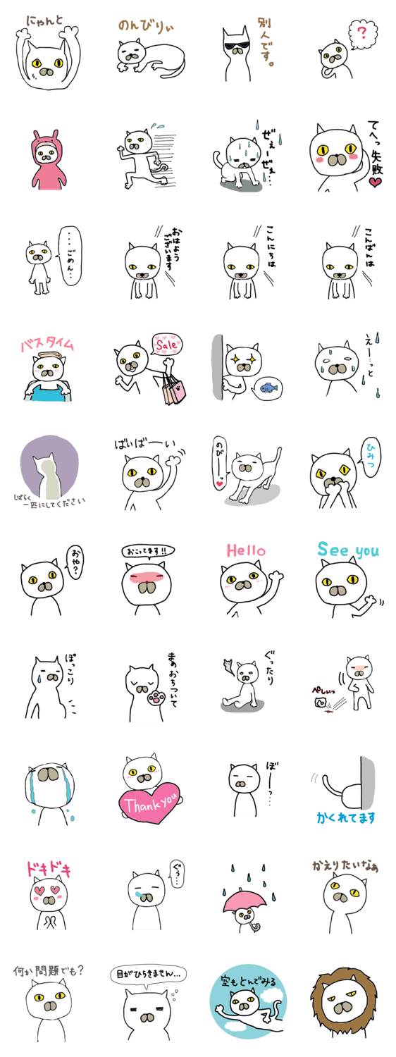 スタンプ名 自由に生きるネコ 白猫のムフ