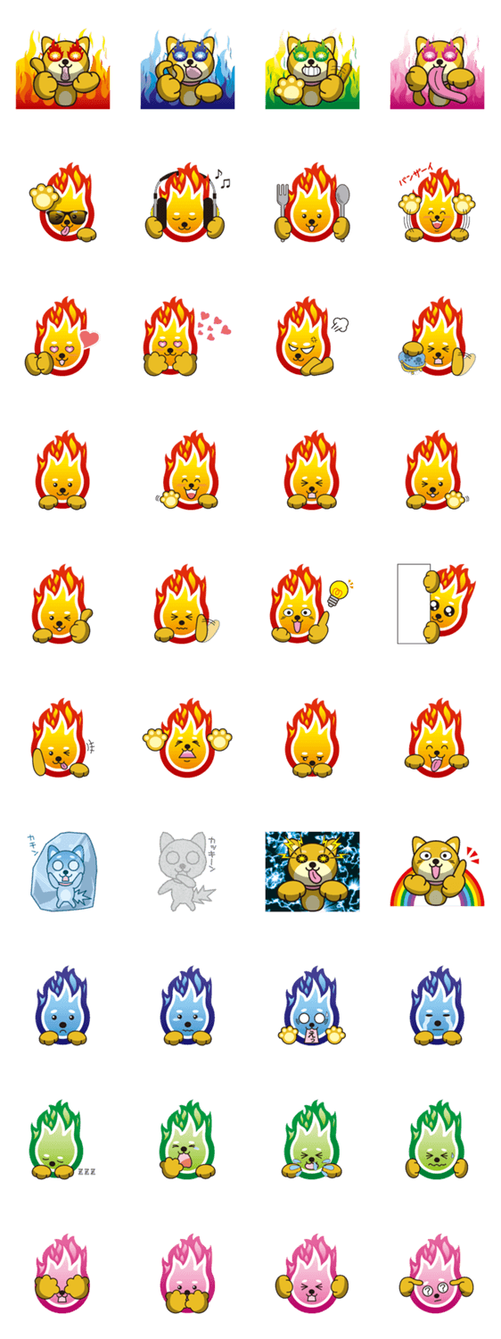 スタンプ説明 マメ柴シリーズ第2弾として「火の玉風」にアレンジしてみました。第1弾で好評だった「ファイヤーバック」など特典付きです。