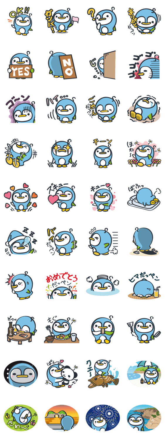 スタンプ説明 和歌山県の白浜町にある白良浜に住んでいるシララ―ペンギンの『しらぺん』。様々な表情のしらぺんが登場します。