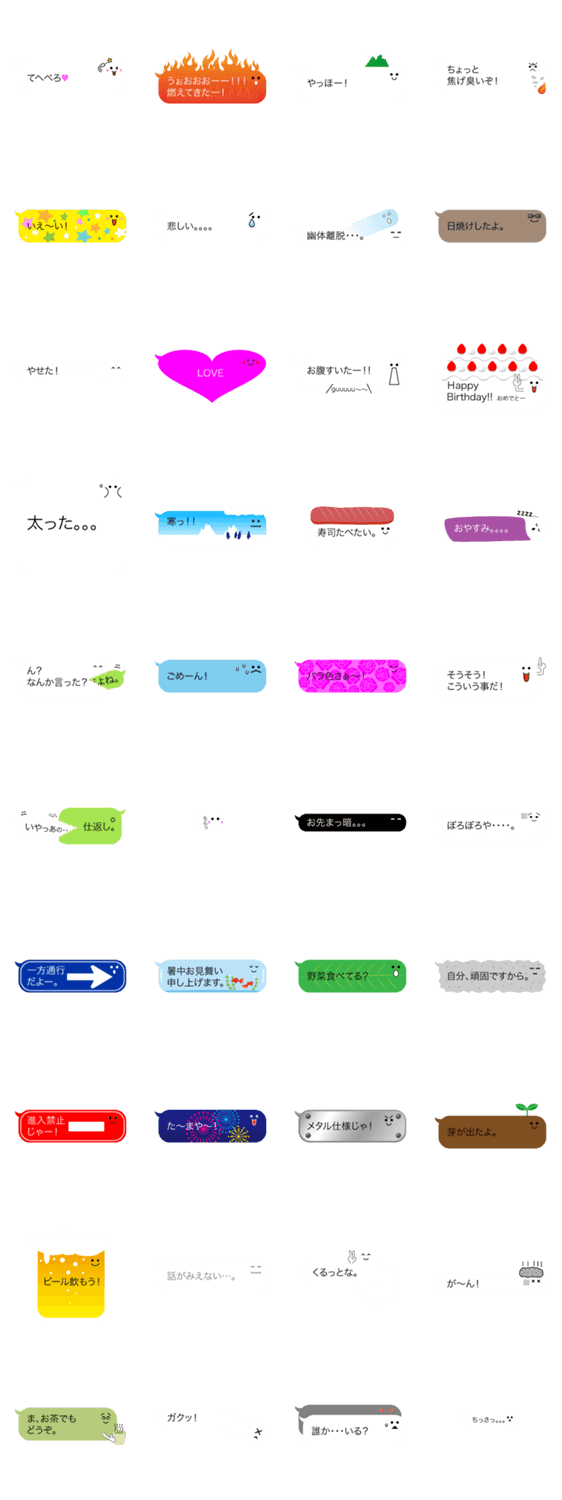 スタンプ説明 何にでも変身するふきだしのスタンプ。盛り上がったり、落ち込んだり、時には相手の会話を食べちゃうことも。。。。楽しんで使ってね!