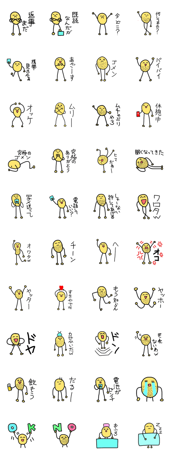 スタンプ説明 手書きポテトおじさんです♪使い勝手がいいポテトおじさん♪みんなとのスタンプの差をつけよう♪