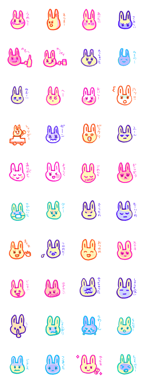スタンプ説明 ちょっと懐かしい感じのカラフルうさぎちゃんスタンプです