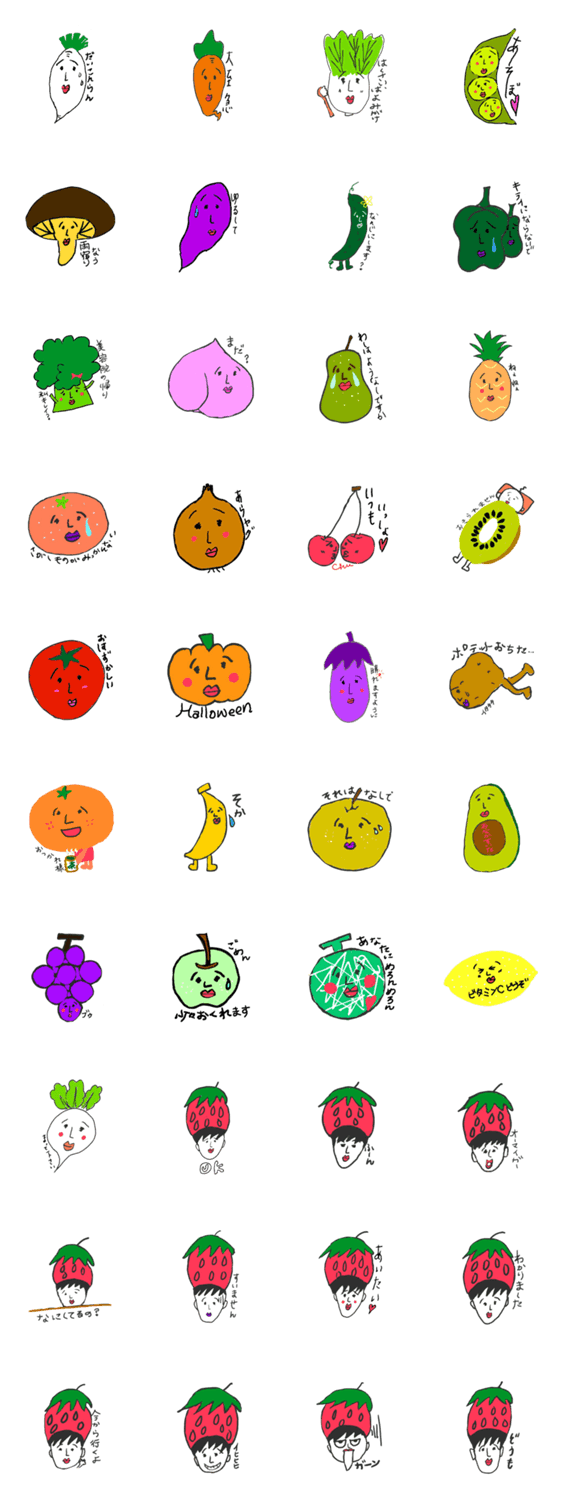 スタンプ名 謎の苺男が育てた果物&野菜達との日常会話
