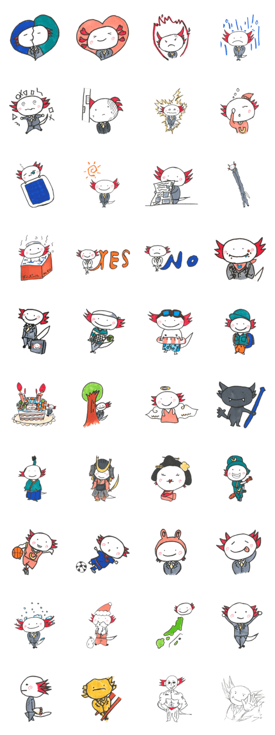 スタンプ説明 小学6年生が描いたウーパー社長のスタンプです。
