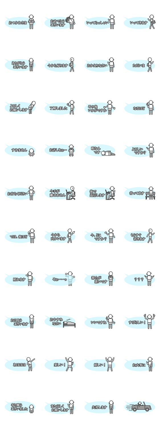 可愛くもかっこよくもない無難なデザインのスタンプ。吹き出し部分は透けるようになってます。