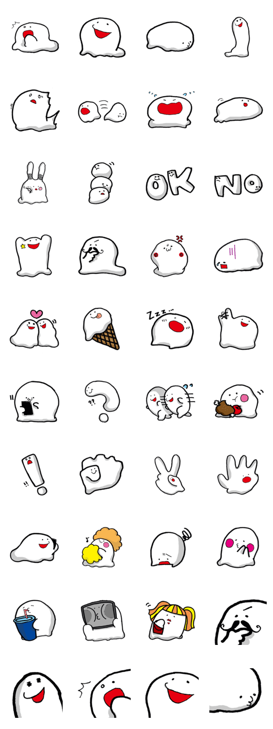 スタンプ説明 形を自由に変形できる奇妙な未確認生物。ゆるかわでぷにぷにした可愛いスタンプです。じゃんけんもできるので友達と使ってね!