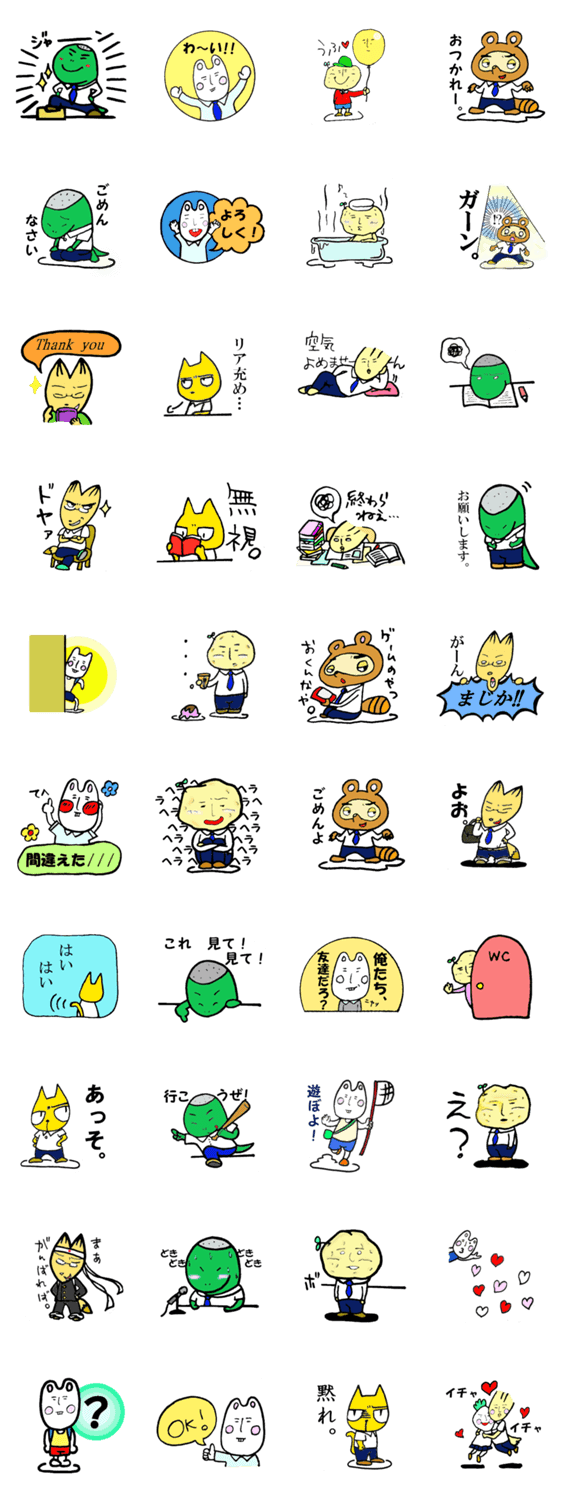 スタンプ説明 愉快な仲間たちをスタンプにしてみました!それぞれの特徴を生かした便利な?スタンプです。
