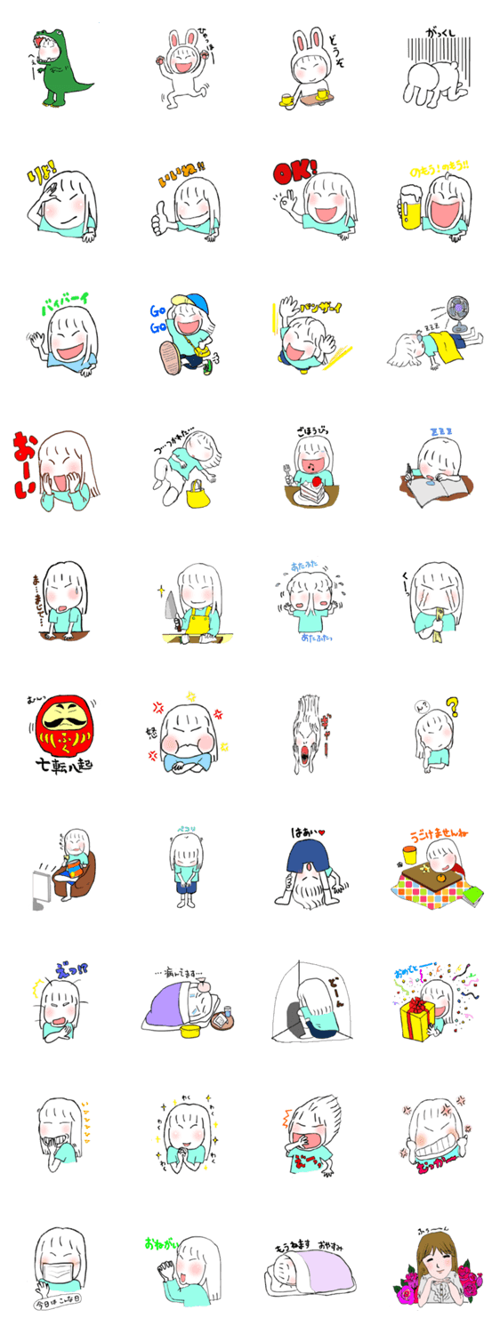 スタンプ説明 ときにはかぶりもの、ときにはだらしない毎日を描いたごく普通の日常使えるスタンプです。どうぞお気楽に使ってください。
