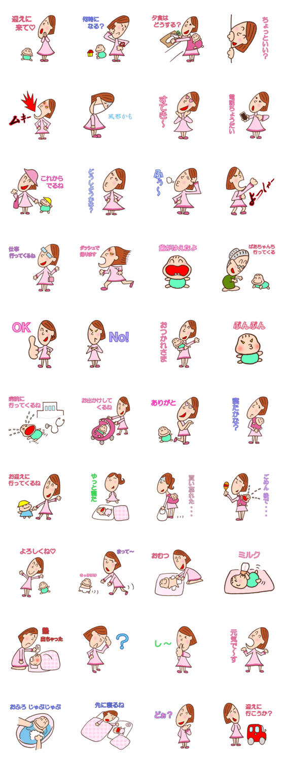 スタンプ説明 何かと忙しい育児中のママが日常的に使える、かわいいスタンプです。