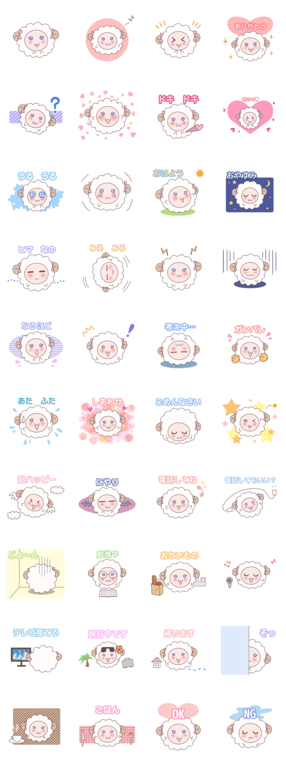 スタンプ説明 乙女ちっくなひつじの女の子です。