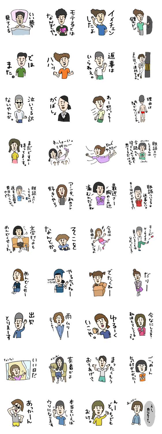 スタンプ説明 ちょっぴりやる気がなくてちょっぴりうっとおしい真顔な人ら。