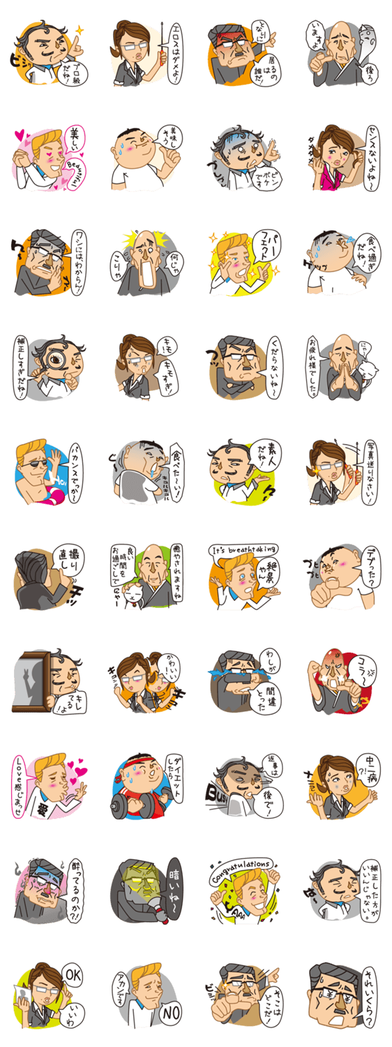 スタンプ説明 六人の鑑定士が写真を鑑定てくれるよ!写真鑑定は6人にお任せ!