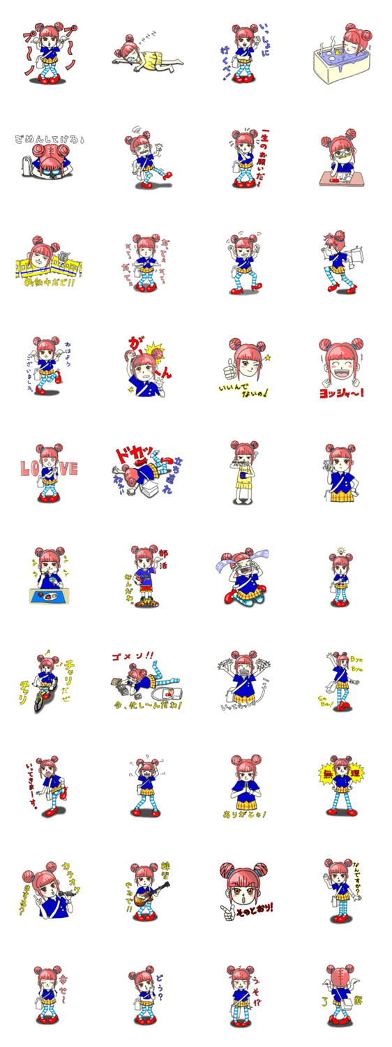 スタンプ説明 田舎のお洒落で天真爛漫な女の子。