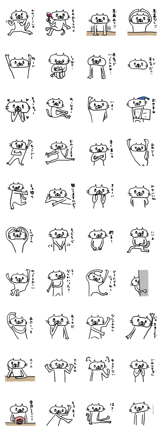 スタンプ説明 ゆる~い感じのねこ。ちょっとむかつくけど、たまにかわいげがあったりする、そんなねこ。