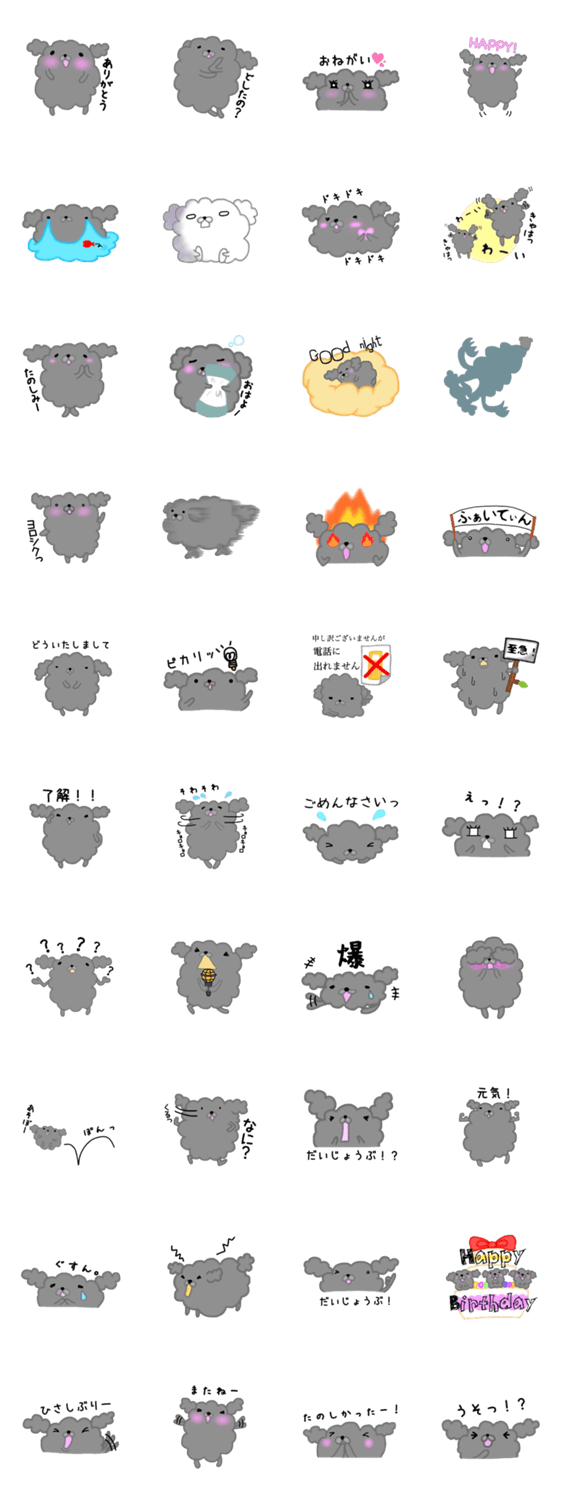 スタンプ説明 ふわふわまるまるのプードルがいろいろな表情であなたの気持ちを代弁します。