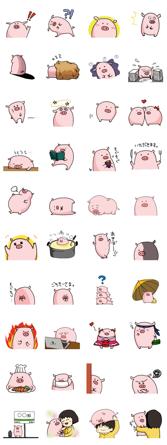 スタンプ説明 無口な豚のスタンプ。文字が少ないので、話の間を持たすのに使ったりしてください!