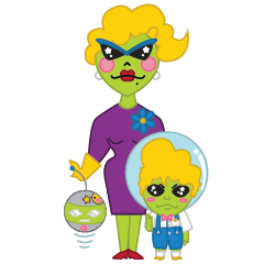 スタンプ説明 This foreigner family just finished holiday on earth and on the way back to their planet But the mother just forget and her child on earth intentionally