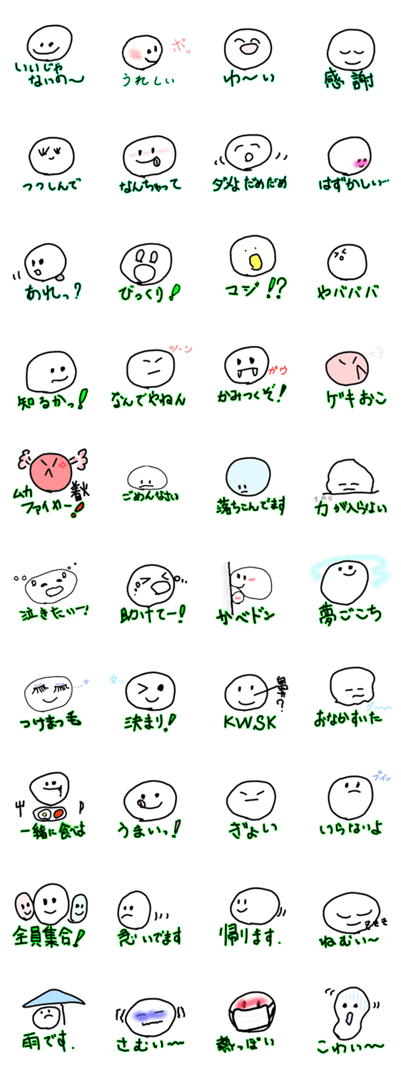 スタンプ説明 純情まるこちゃんは、気持がすぐに顔に出ちゃう。あなたもこれで自分の気持ちを表現してみない?