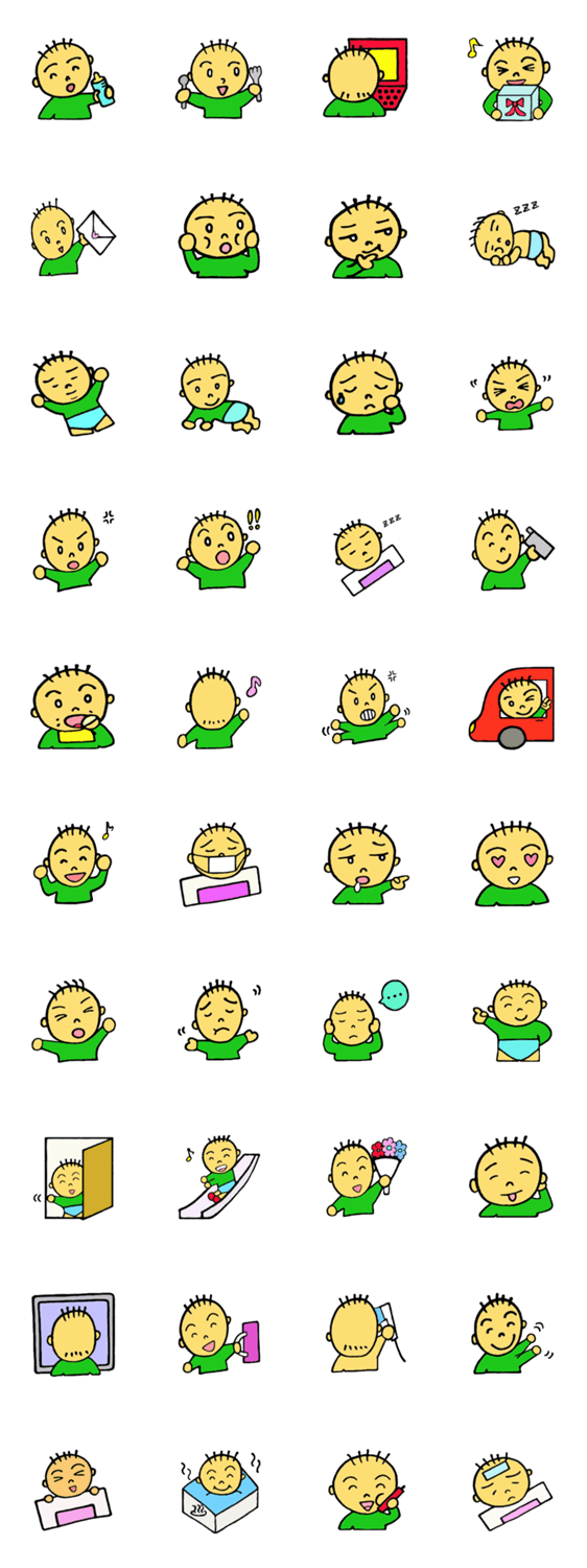 スタンプ説明 喜怒哀楽いっぱいのこども誕生!まんまるお顔とぷにぷにほっぺが魅力的!