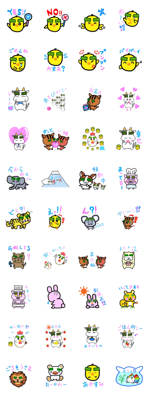 スタンプ説明 眉毛が海苔のキャラクターが日々の会話を彩ります。のり まゆげ 一族 第3弾!!