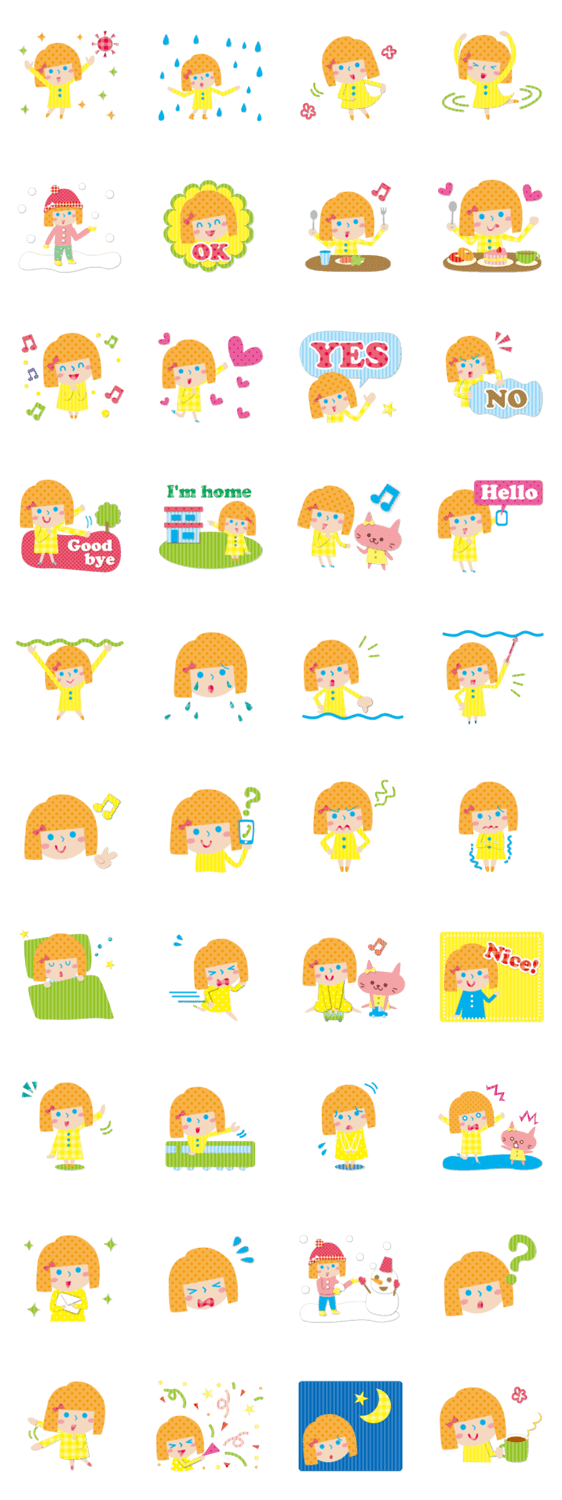 スタンプ名 女の子とねこ日常会話。子ども、友だちへ