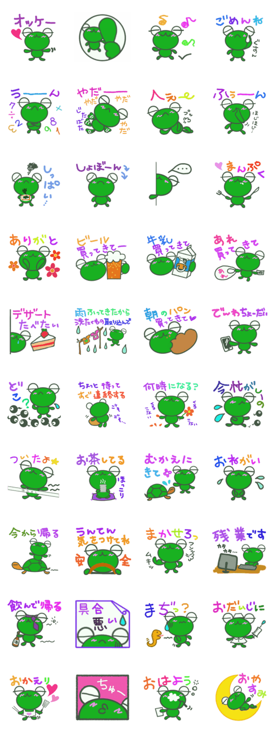 かわいいカエルのケロ吉が、あなたの気持ちを代弁してくれるよ!日常会話や挨拶などなど、とっても便利。